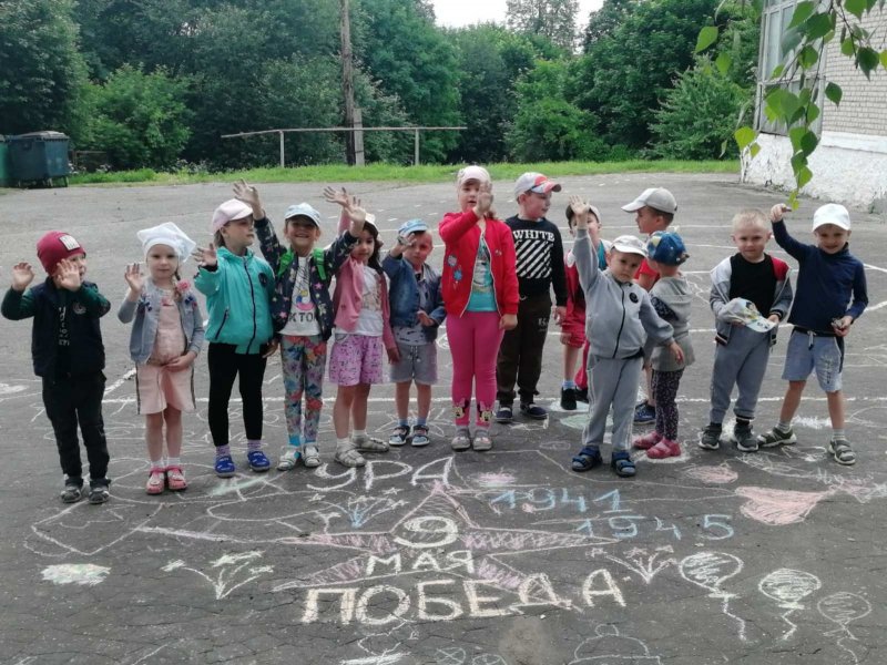 Активное участие в акции приняли воспитанники дежурной группы МБДОУ детского сада № 2 «Вишенка». Вооружившись цветными мелками, ребята увлеченно и с большим удовольствием принялись за создание своих маленьких шедевров. И вот уже через несколько минут на асфальте перед зданием детского сада появилась настоящая радуга красок. С легкой руки юных художников появились солнце, воздушные шары, звезды, танки и даже салюты. Асфальт просто пестрил яркими, красочными и добрыми рисунками