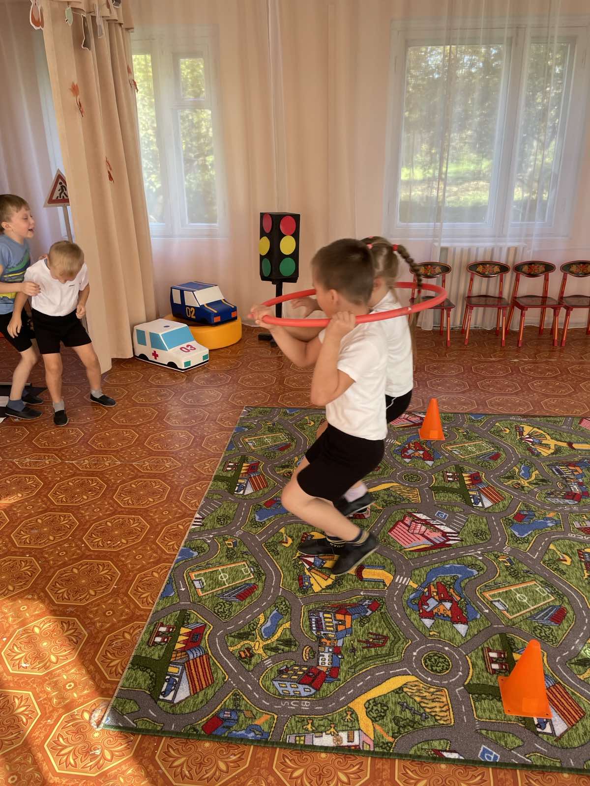 В музыкально – спортивном зале было проведено развлечение «Путешествие в страну Светофорию», Бука Злюка украла все дорожные знаки в стране Светофории. Но наши ребята справились со всеми заданиями и вернули знаки в страну Светофорию.