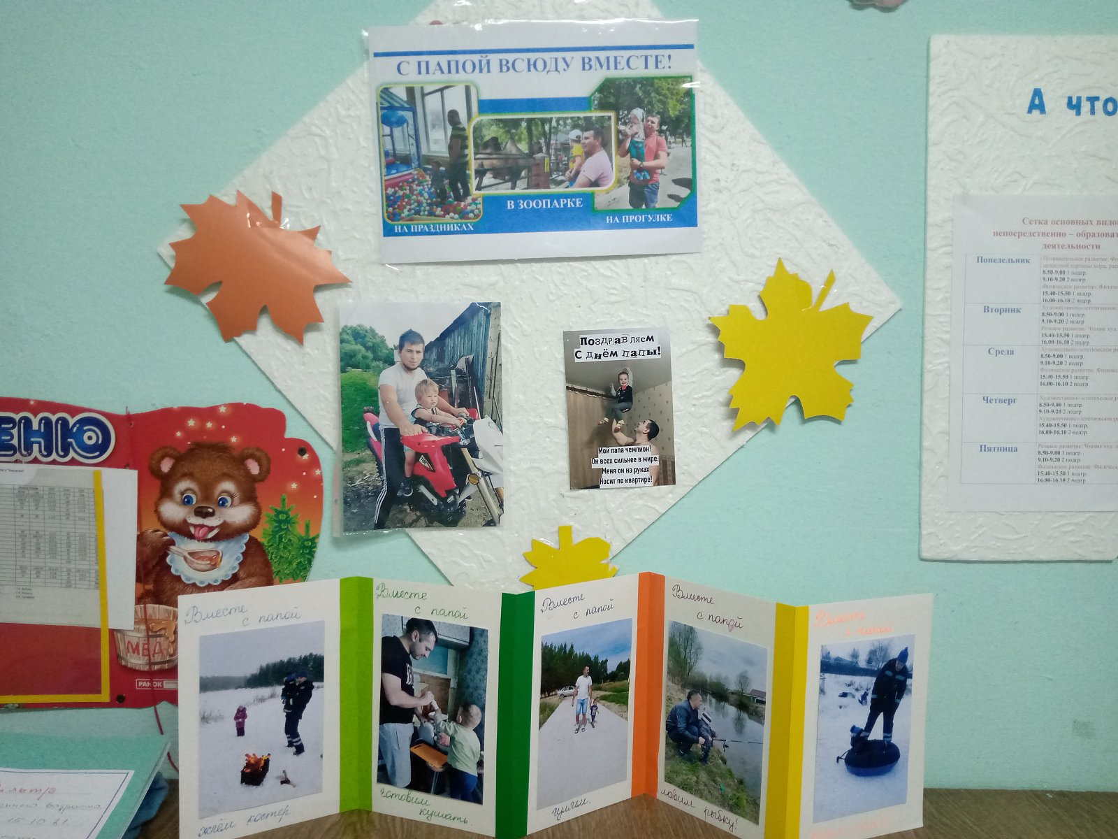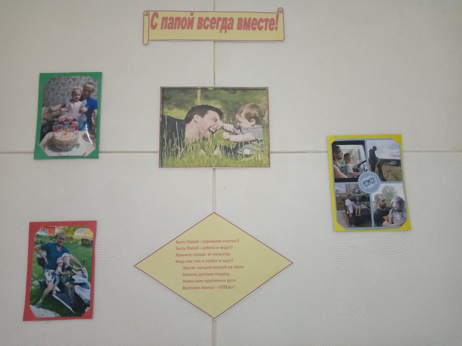 В нашем детском саду прошли беседы с детьми о папах (чем интересным они с ними занимаются, чему папы их любят и т.д.). В приемных каждой группы к празднику оформлены трогательные стенды о папах. Дороги наши ПАПЫ с праздником Вас с Днем ОТЦА!