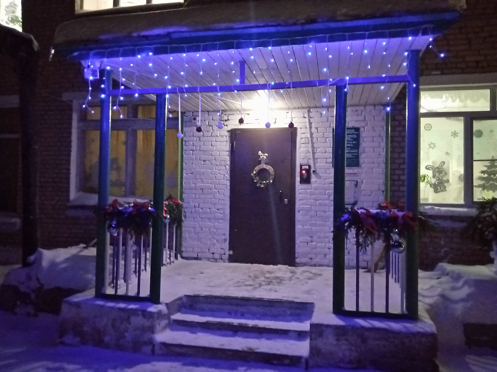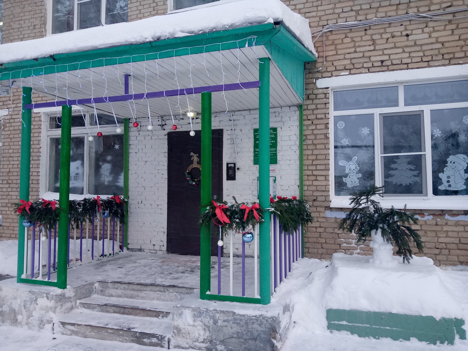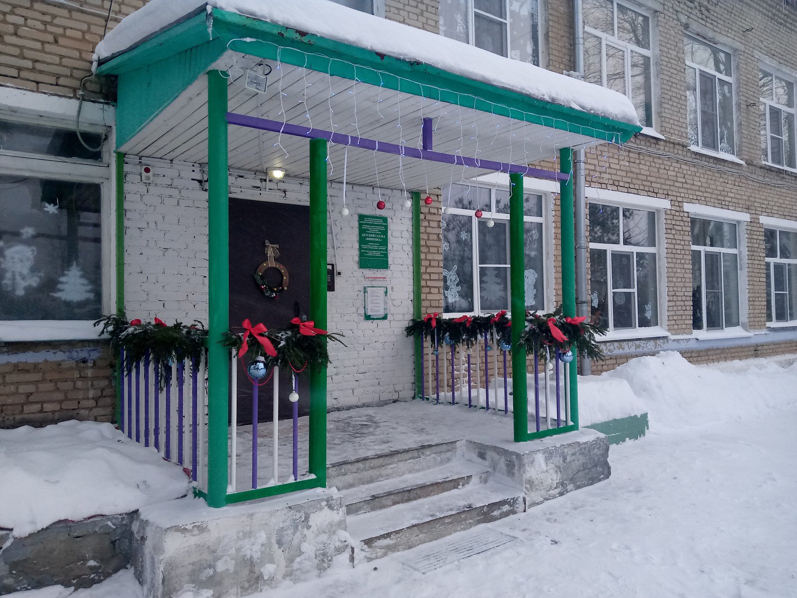 Встречаем Новый год!!! Детский сад "Вишенка" подготовился к стрече долгожданного праздника. Воспитатели Ермакова Н.В. и Ткачева И.Е. красиво украсили окна и лестницу, а также вход в детский сад. А педагог Киселева Л.П., младший воспитатель Зведенюк О.С. и повар Сафронова Н.М. порадовали малышей снежными сказочными фигурами на участке. МОЛОДЦЫ!!