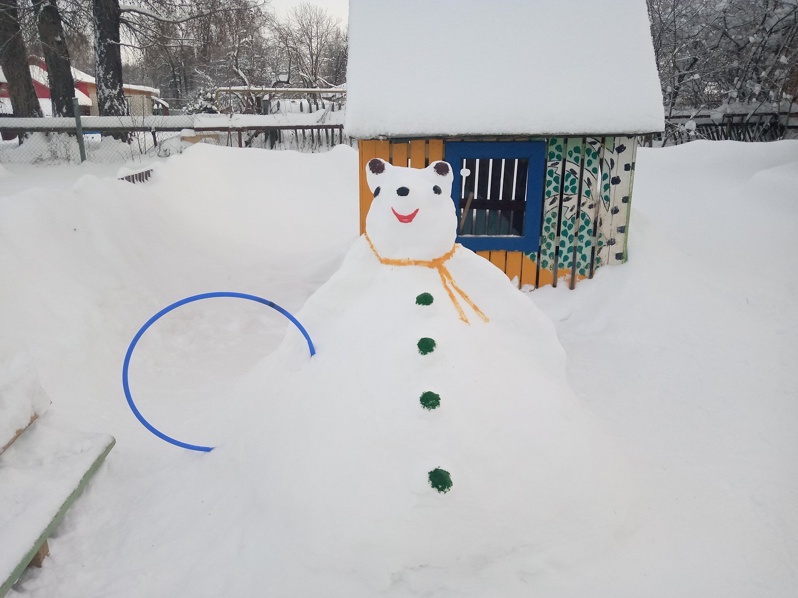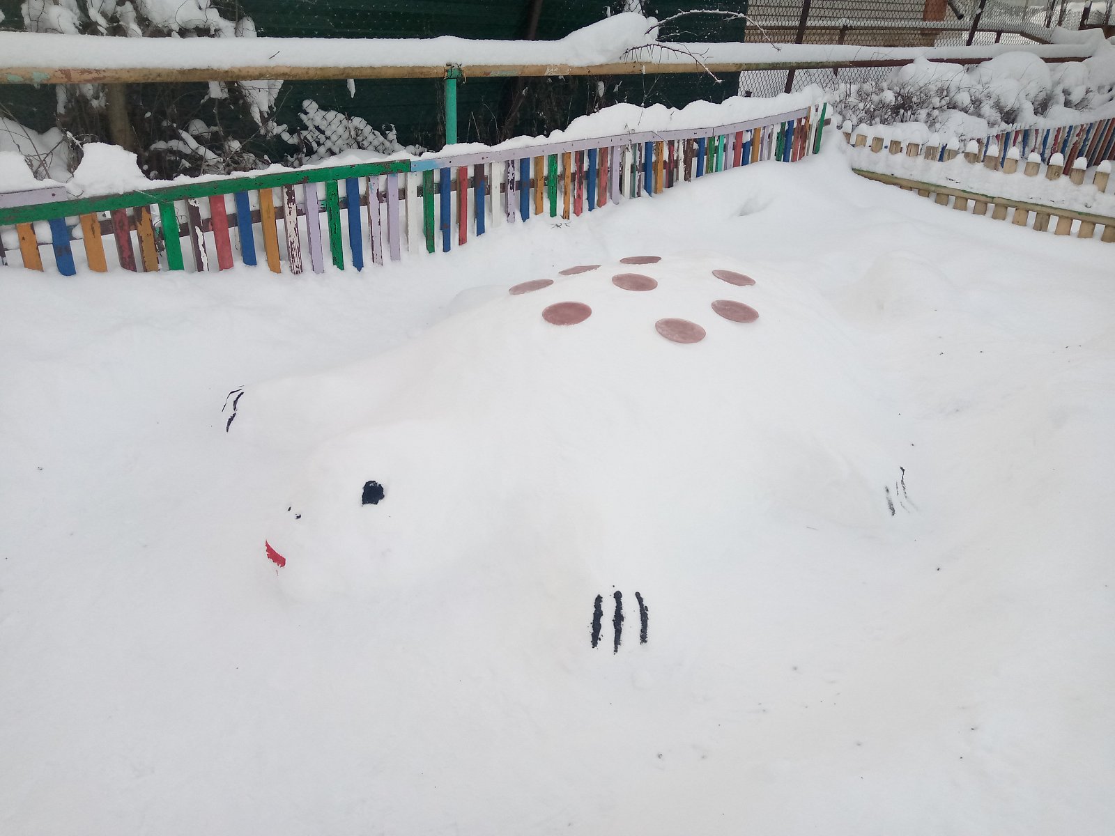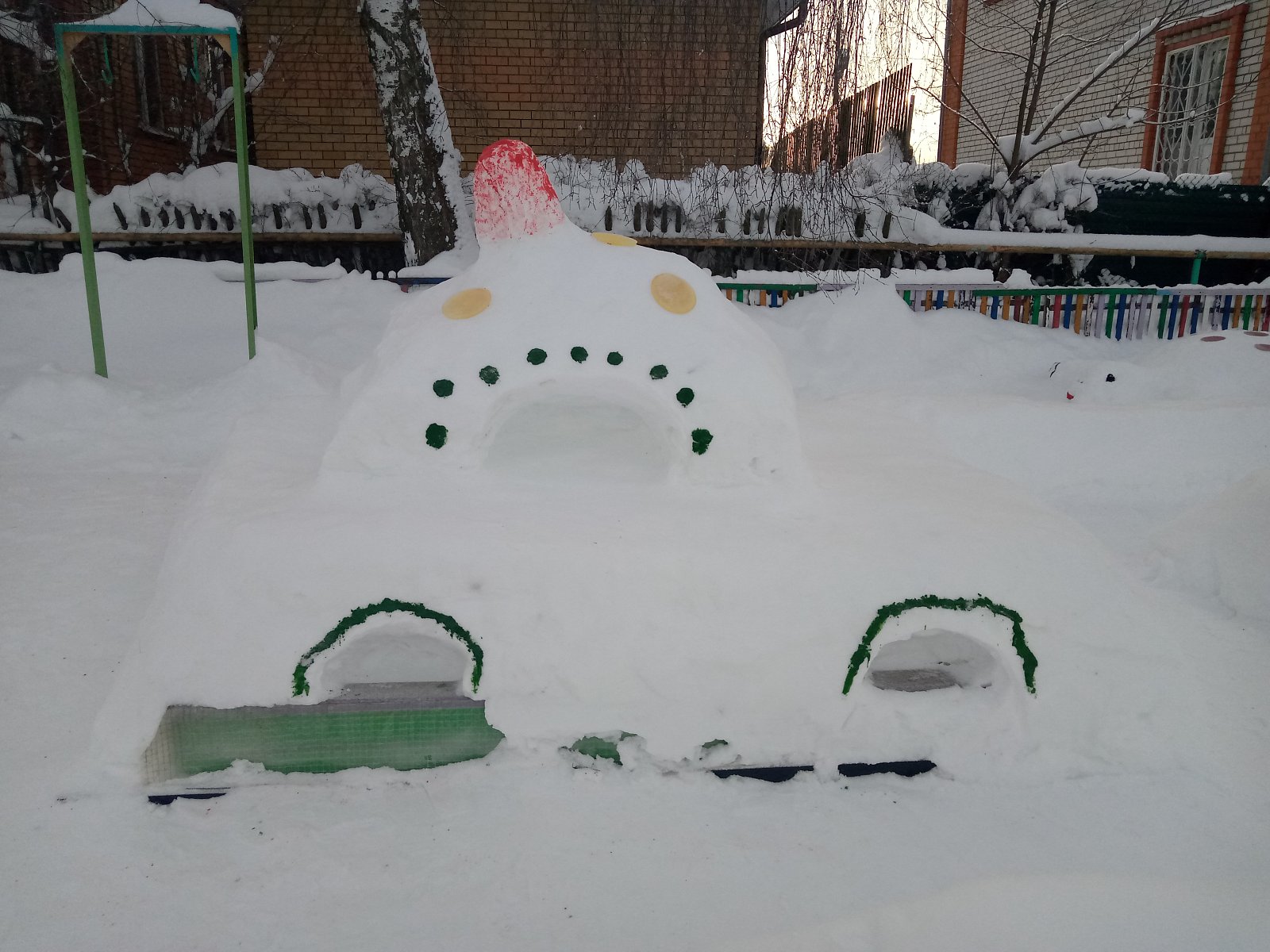 Встречаем Новый год!!! Детский сад "Вишенка" подготовился к стрече долгожданного праздника. Воспитатели Ермакова Н.В. и Ткачева И.Е. красиво украсили окна и лестницу, а также вход в детский сад. А педагог Киселева Л.П., младший воспитатель Зведенюк О.С. и повар Сафронова Н.М. порадовали малышей снежными сказочными фигурами на участке. МОЛОДЦЫ!!