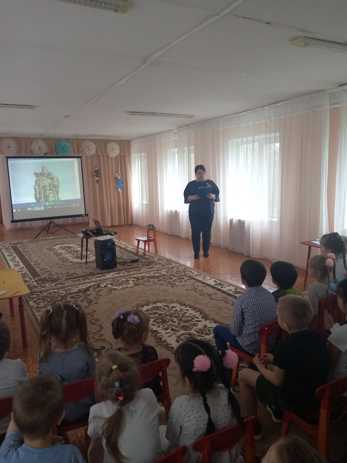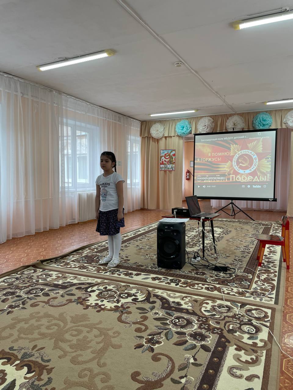 Также на празднике дети пели любимую всеми «Катюшу». Посмотрели фильм о Бессмертном полке нашего детского сада. И приняли участие в Международной акции «Читаем детям о Великой Отечественной войне», прослушав рассказ Л.Кассиля «Памятник советскому солдату», который прочитала воспитатель Ермакова Наталья Владимировна.