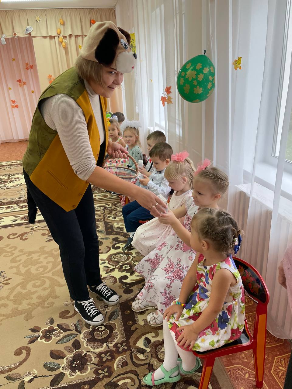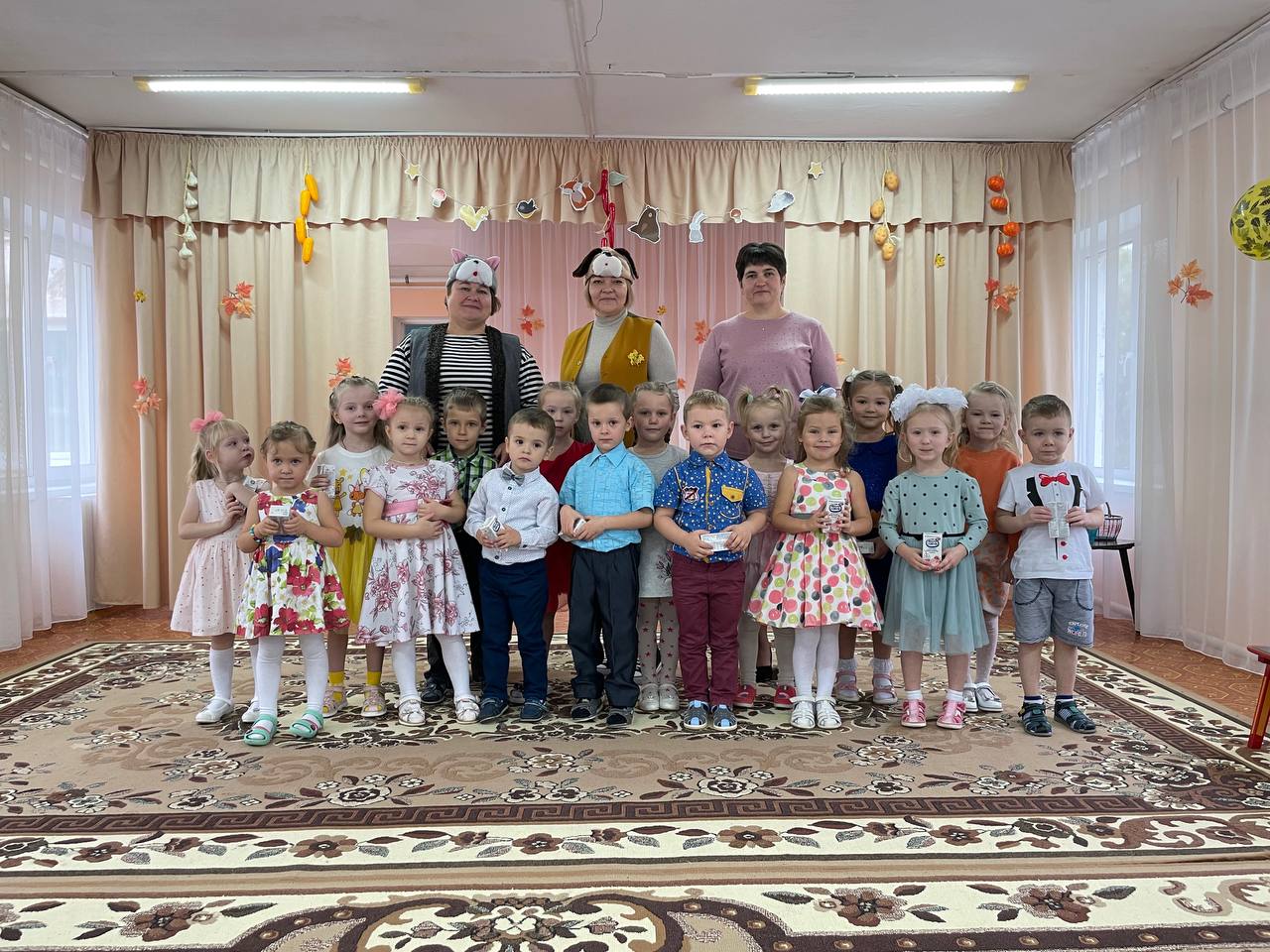 Гостем средней группы были Матроскин и Шарик из Простоквашино, которым дети помогали собирать урожай с детьми проводил веселые лесные игры.