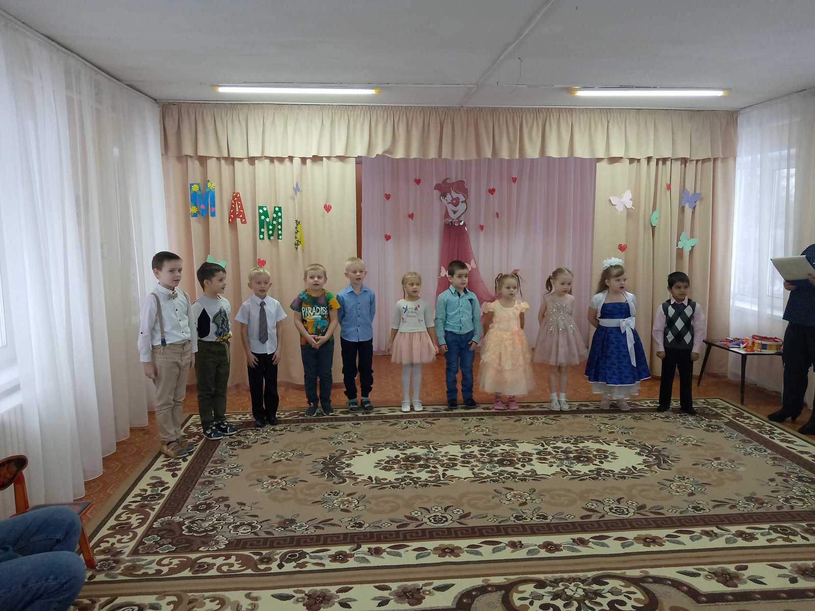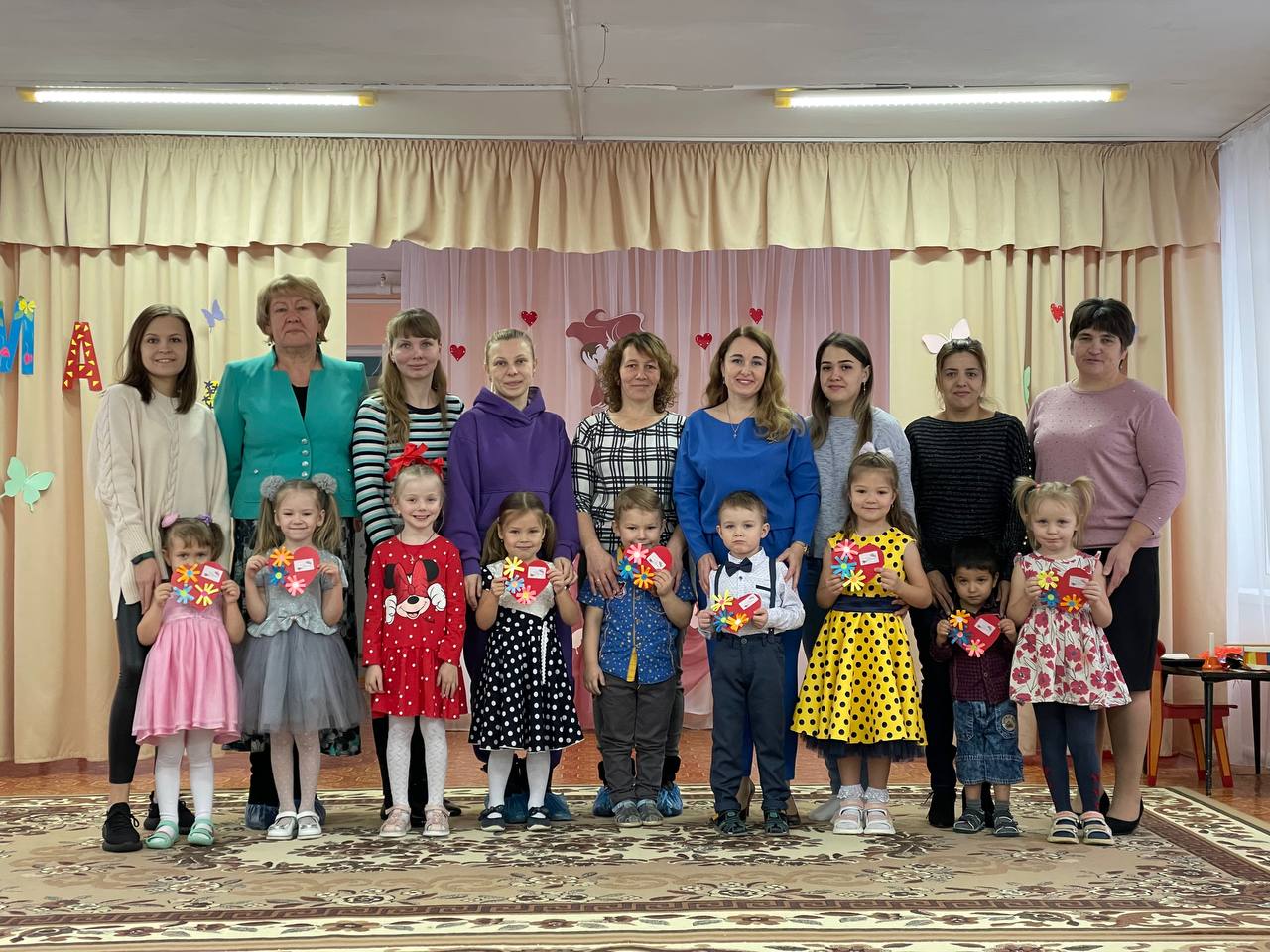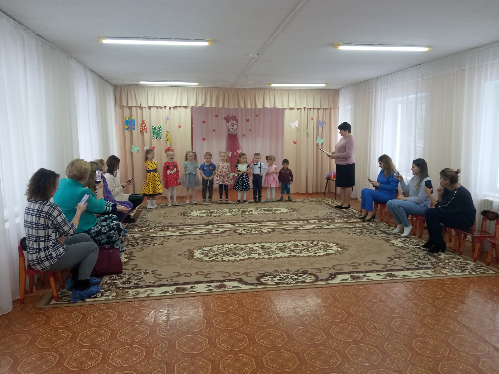 В преддверии самого светлого и доброго праздника Дня матери, в нашем саду прошли праздничные мероприятия: «Спешим поздравить наших мам». Очень трогательно были рассказаны стихи, дети спели песни. Но и мамы не остались в стороне, они исполнили детям музыкальную сказку, вместе с ребятами играли и танцевали. А в группах воспитатели вместе с детьми приготовили для мамочек праздничные стенгазеты и подарки.