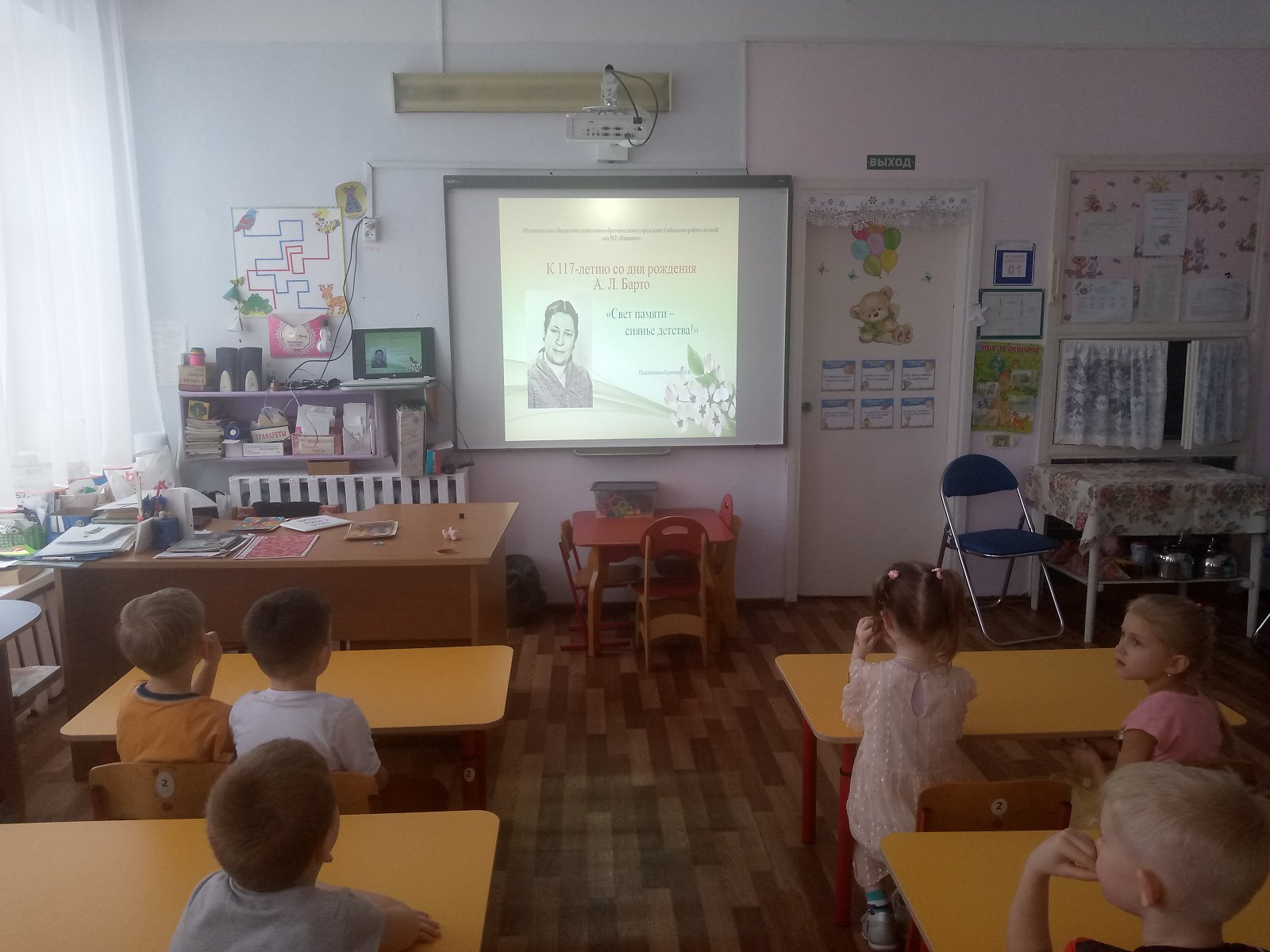 В нашем детском саду сегодня прошел тематический день под названием "В стране добрых стихов", приуроченный ко дню рождения А. Барто. Малыши группы раннего возраста «Гномики» рассматривали книги с иллюстрациями к стихам А.Барто, она написала много стихов про игрушки и с удовольствием их слушали. Играли в игру с мячом, а потом его лепили. Вечером продолжили игру в любимые игрушки из стихотворений Барто. В средней группе «Сладкоежки» была организована выставка книг любимой поэтессы, ребята вспомнили любимые стихи А.Барто, а потом нарисовали рисунки по этим стихотворениям. Дети старше-подготовительной группы «Любознайки» посмотрели презентацию о жизни и творчестве писательницы, из которой узнали, где она родилась, выросла, когда написала первые стихи, кем мечтала стать в детстве. С увлечением поиграли в викторину "Игрушки": по картинке рассказывали стихотворение.