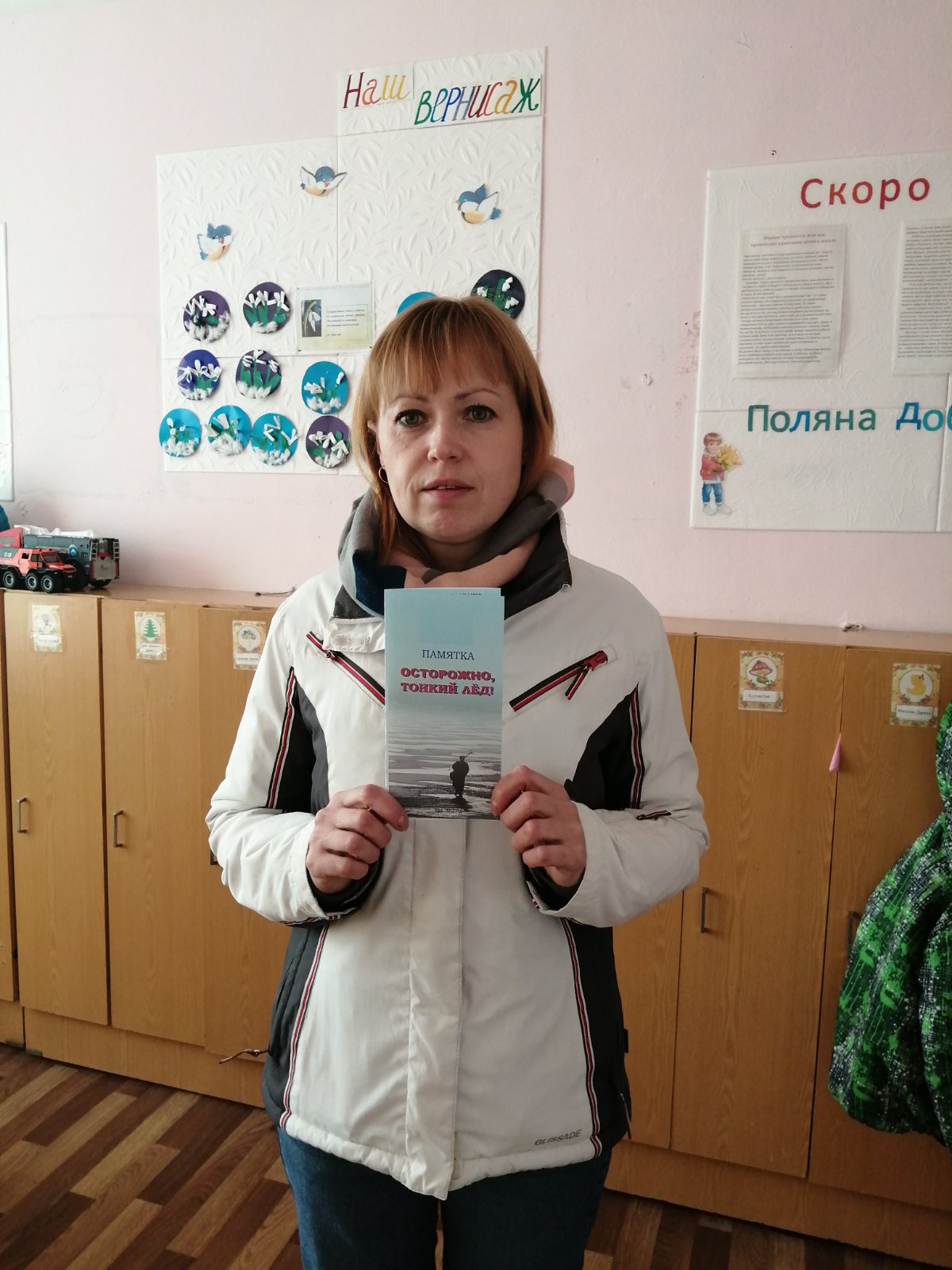 Для родителей были предложены памятки по теме «Осторожно! Тонкий лед!»; консультация «Правила поведения на водоеме (реке, озере)»; «Повышение ответственности родителей за безопасность пребывания детей вблизи водоёмов», проведен инструктаж по безопасности у водоемов в весенний период.