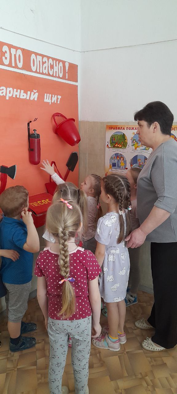 В работе с детьми педагоги использовали разнообразные формы: игры, беседы по пожарной безопасности на темы: «Что мы знаем о пожарах», «Безопасное поведение при пожаре», «Можно ли играть с огнем?», «Зачем нужны правила пожарной безопасности?», чтение художественной литературы: Б.Житков «Пожар», С.Михалков «Дядя Степа», К.Чуковский «Путаница», просмотр мультфильмов на противопожарную тематику: «Тревога в лесу», «Кошкин дом». Ребята совершили экскурсию к пожарному щиту в ДОУ, занимались продуктивной деятельностью, выполнили аппликацию «Пожарная машина».