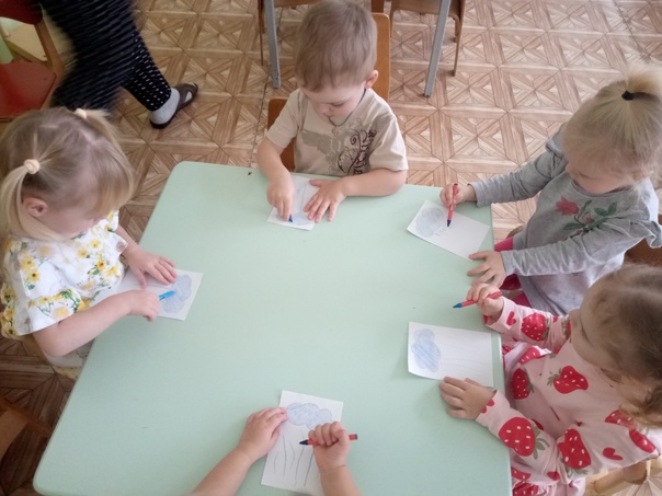 За окном идет дождь. Но для наших малышей группы "Гномики"это не повод для грусти. Они весело играют в игру "Солнышко и дождик" и рисуют "волшебными" карандашиками капельки дождя.