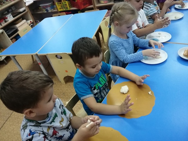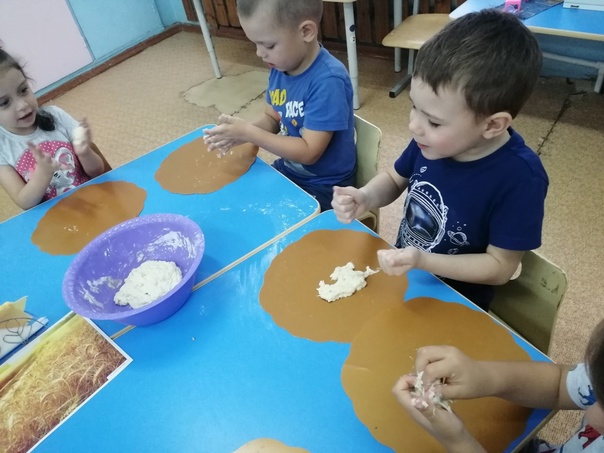 Рассматривали картинки о хлебе. И с большим интересом САМИ месили тесто.