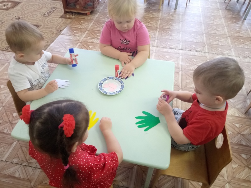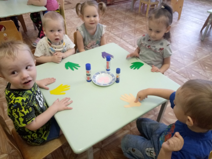 Вместе с воспитателем они сделали свои ладошки и украсили их маленькими, любящими сердечками