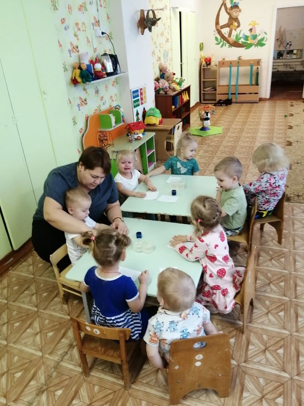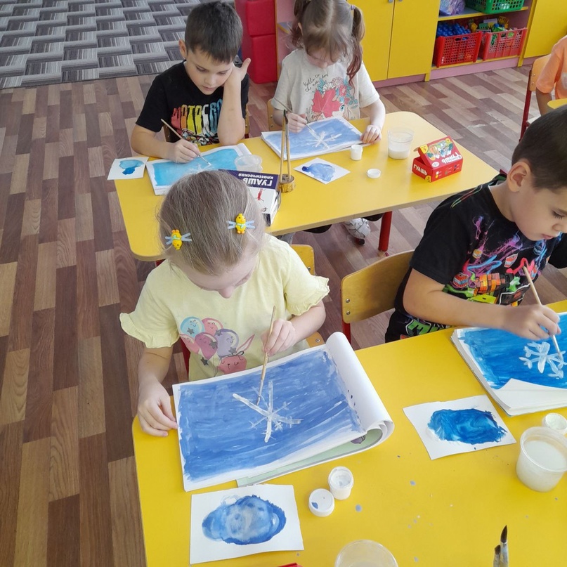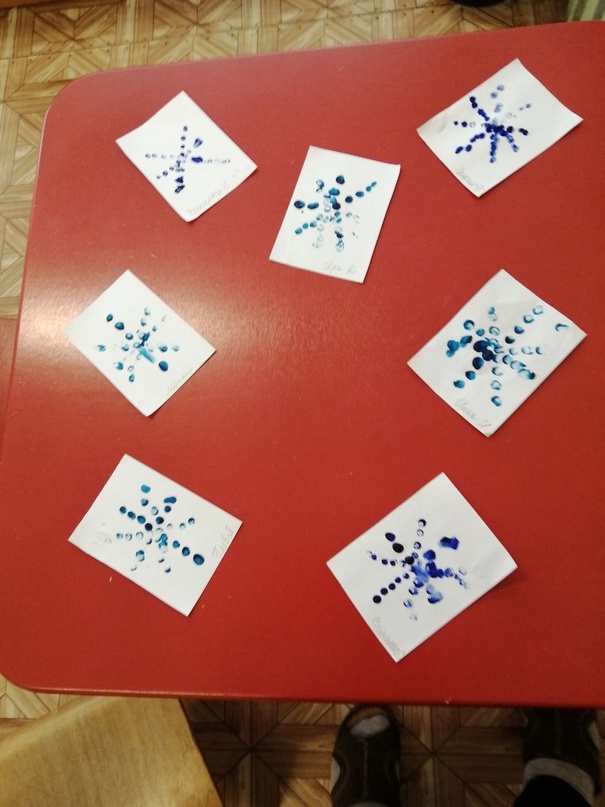 Этот день напомнил творческую мастерскую! Ребята группы раннего возраста выполнили рисование снежинки пальчикам.