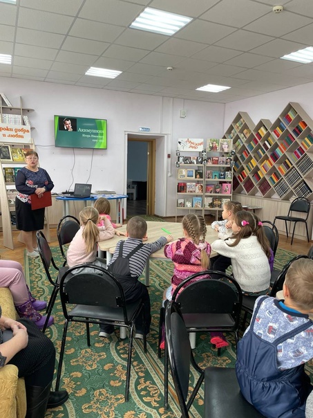 Ребята старше-подготовительной группы посетили библиотеку на познавательное мероприятие, посвящённое дню рождения русского писателя-натуралиста Игоря Ивановича Акимушкина.