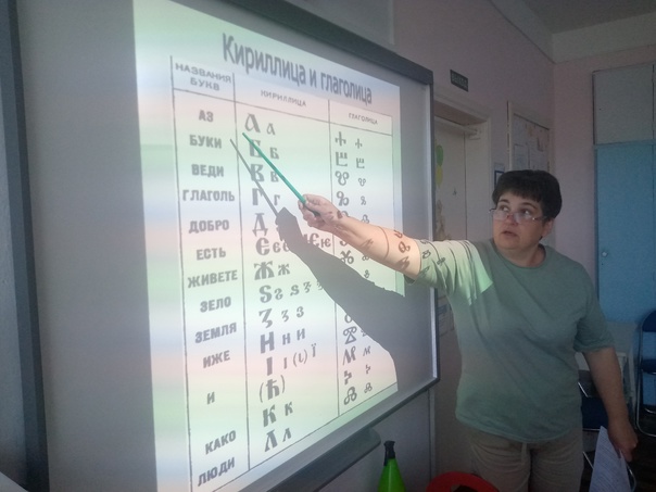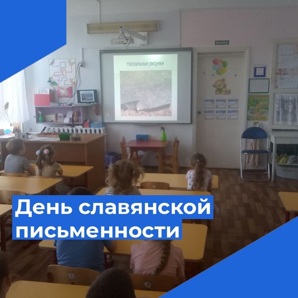 Педагог Ткачева И.Е. провела с детьми беседы на темы: «Развитие славянской письменности», «Первая печатная книга на Руси», «Откуда азбука пошла». Воспитанники узнали много о создателях русской азбуки, святых Кирилле и Мефодии.