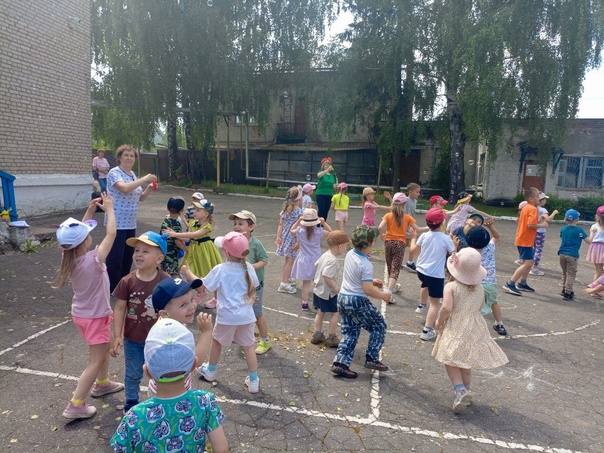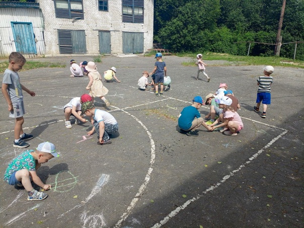 Заключительным этапом праздника стала дискотека с мыльными пузырями и рисование мелкамт на асфальте.