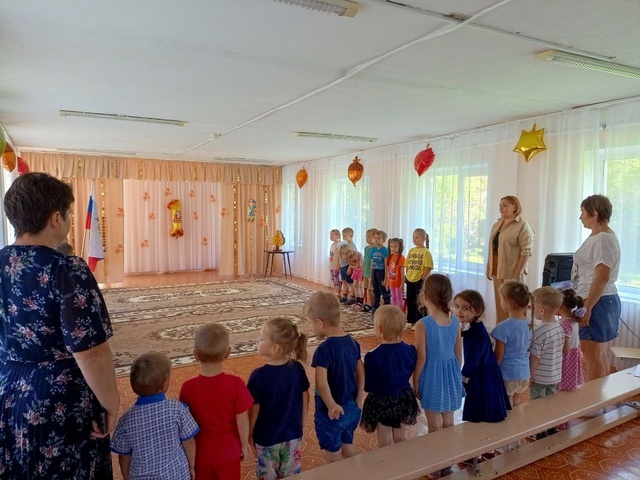 В нашем детском саду прошло мероприятие, посвященное Дню знаний. Которое торжественно открылось гимном Российской Федерации.