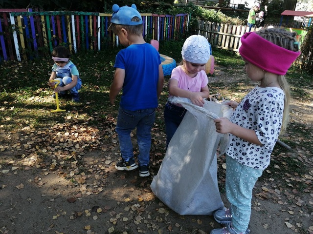 Ребята и коллектив нашего детского сада проводят уборку территории учреждения. Наша цель благоустроить территорию дошкольного учреждения, очистить участки от листвы, веток, мусора.