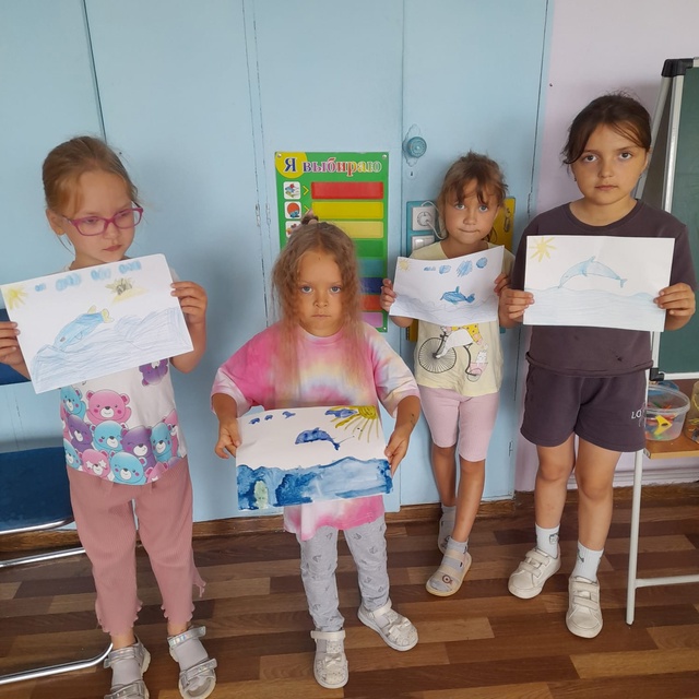 И, конечно, не обошлось без творчества! Каждый из ребят нарисовал своего собственного дельфина, проявив не только фантазию, но и художественные способности.